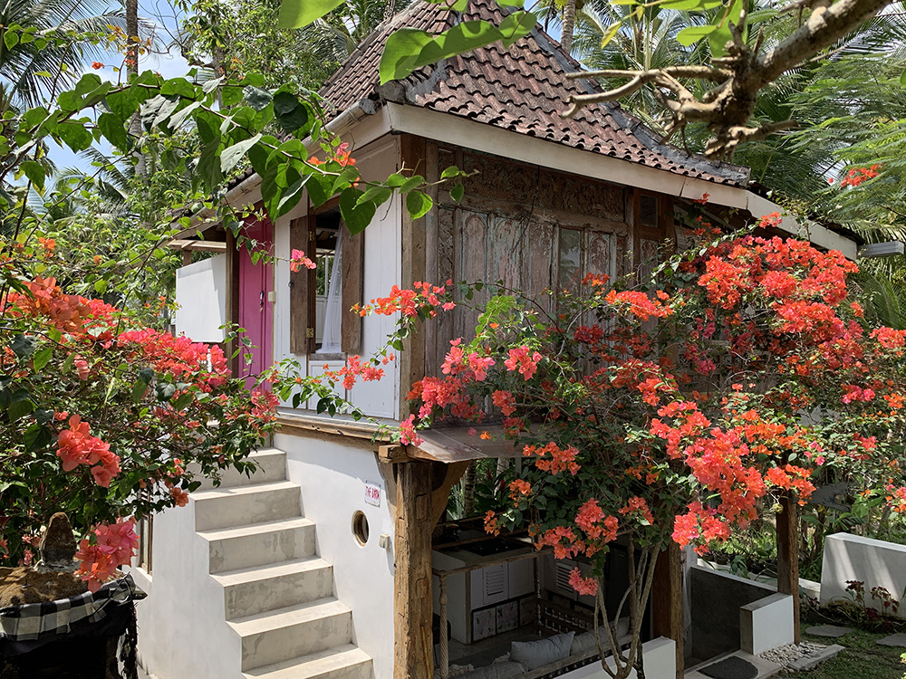 This white-on-white room with a veranda in the jungle tree-tops is a tranquil magic space. Many creatives from all around the world have been here writing books, designing jewelry and creating art of all kinds.
