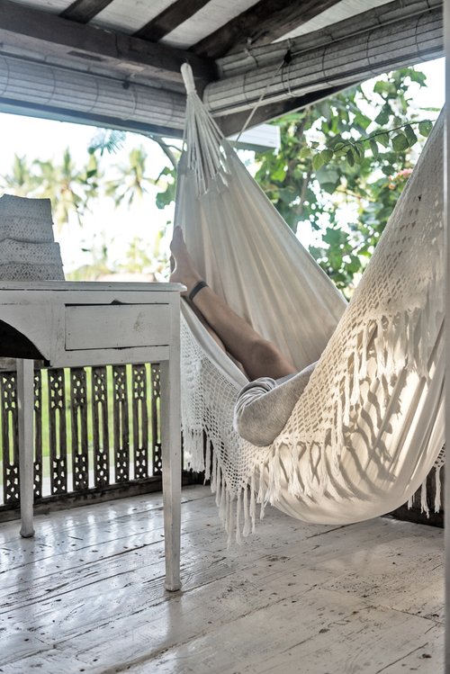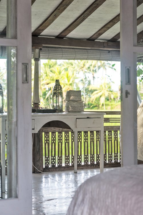 This white-on-white room with a veranda in the jungle tree-tops is a tranquil magic space. Many creatives from all around the world have been here writing books, designing jewelry and creating art of all kinds.