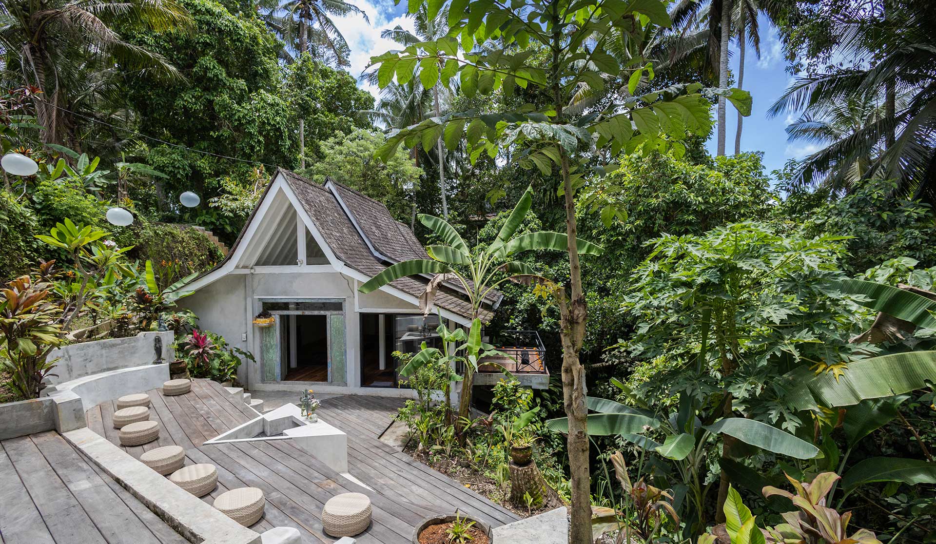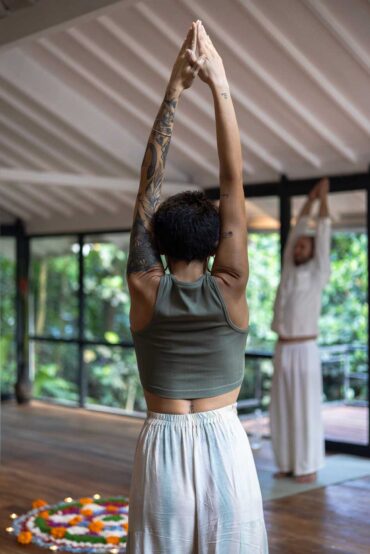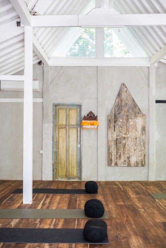 Deep within our gardens, down by the river, lies our yoga shala. The surrounding jungle offers a calm, soothing protection, a trickling quiet that settles the mind until everything else gently falls away.