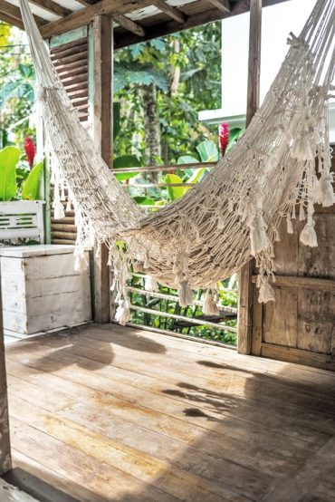 This white-on-white room with a veranda in the jungle tree-tops is a tranquil magic space. Many creatives from all around the world have been here writing books, designing jewelry and creating art of all kinds.